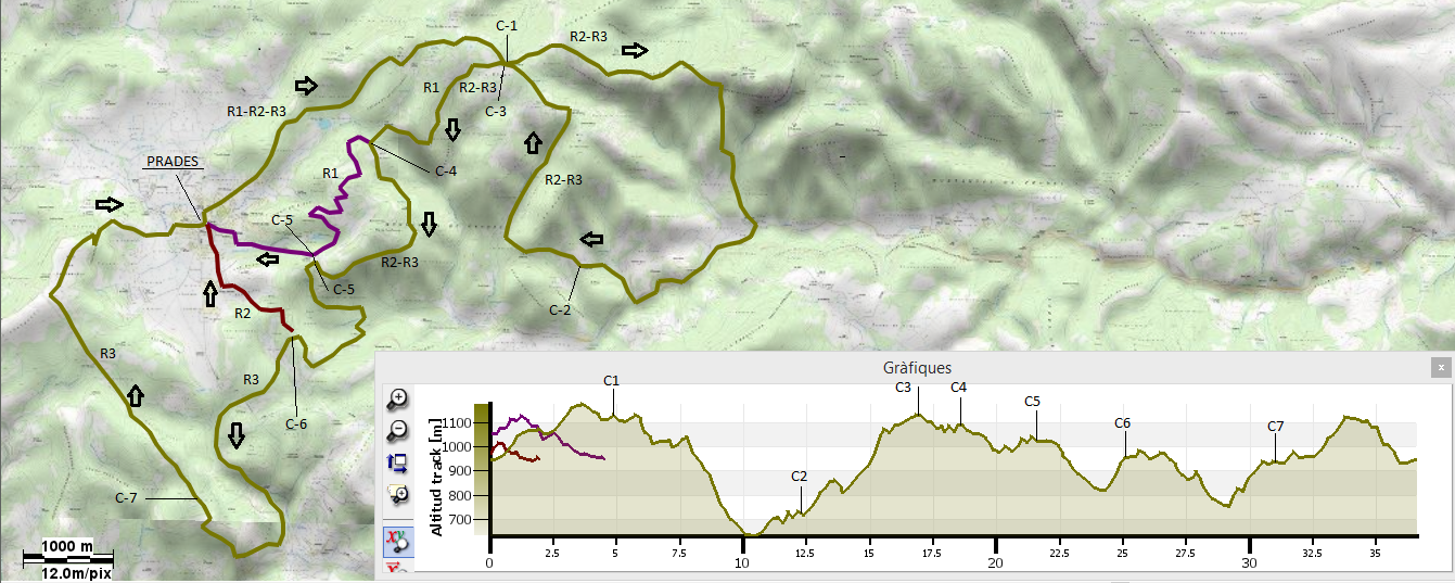 36,2 Km desnivell +1700m (Prades - C1 - C2 - C3 - C4 - C5 - C6 - C7 - Prades)